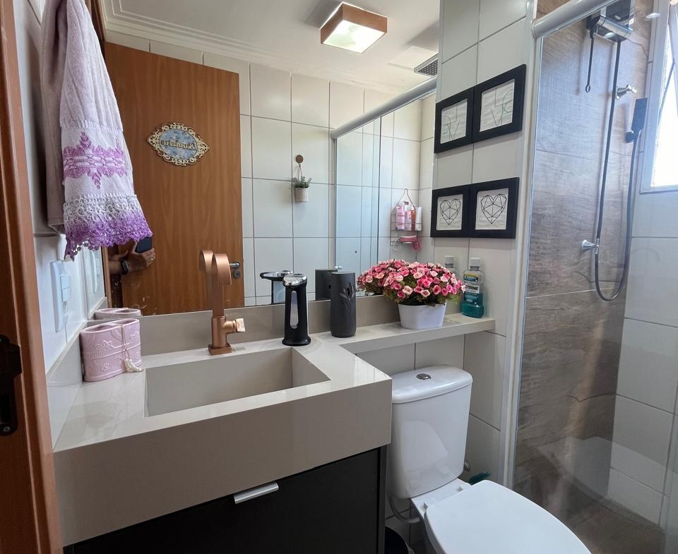 • Banheiro: Planejado e com acabamento de fino padrão (espelho total).