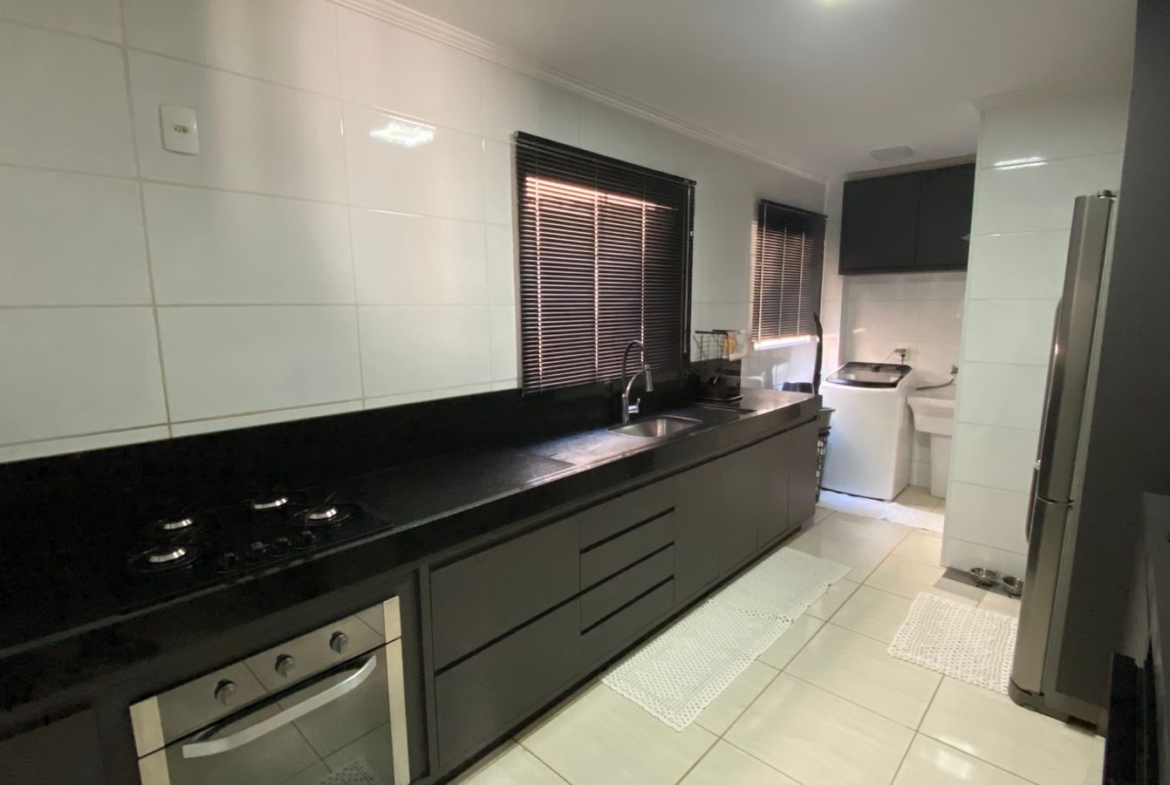 cozinha com armários planejados e fogão cooktop e forno