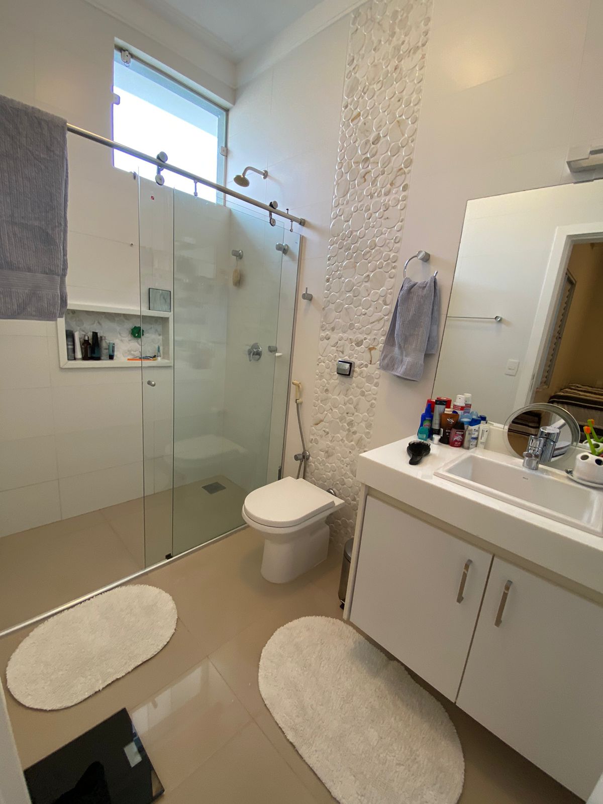 02 banheiros sociais e 01 lavabo estrategicamente posicionados.