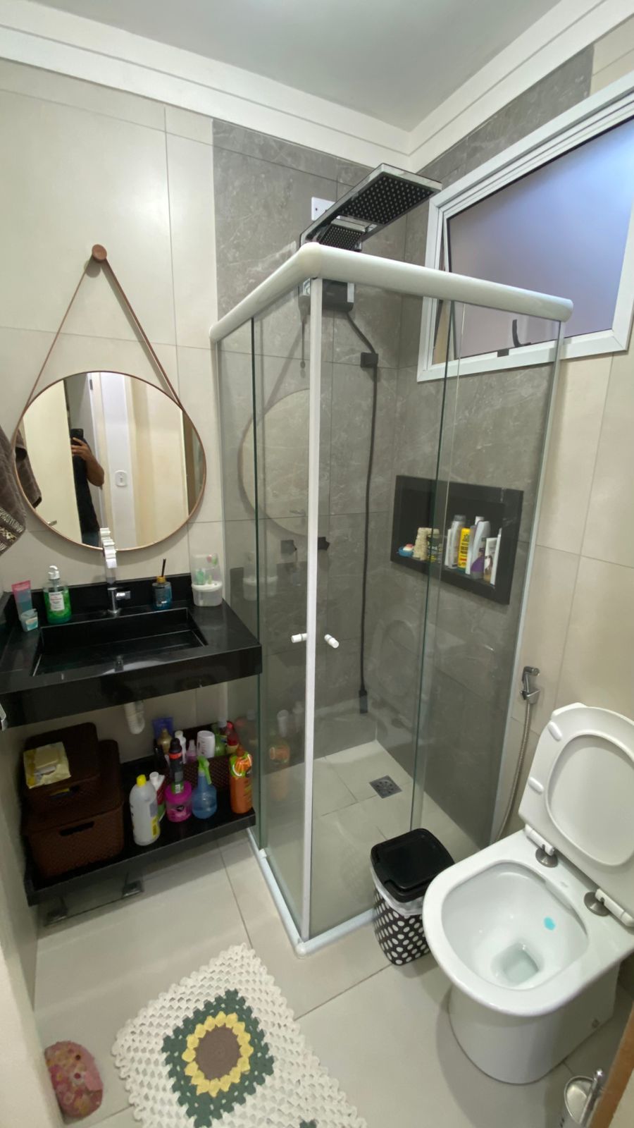 Acabamento Refinado: banheiro moderno com box de vidro.