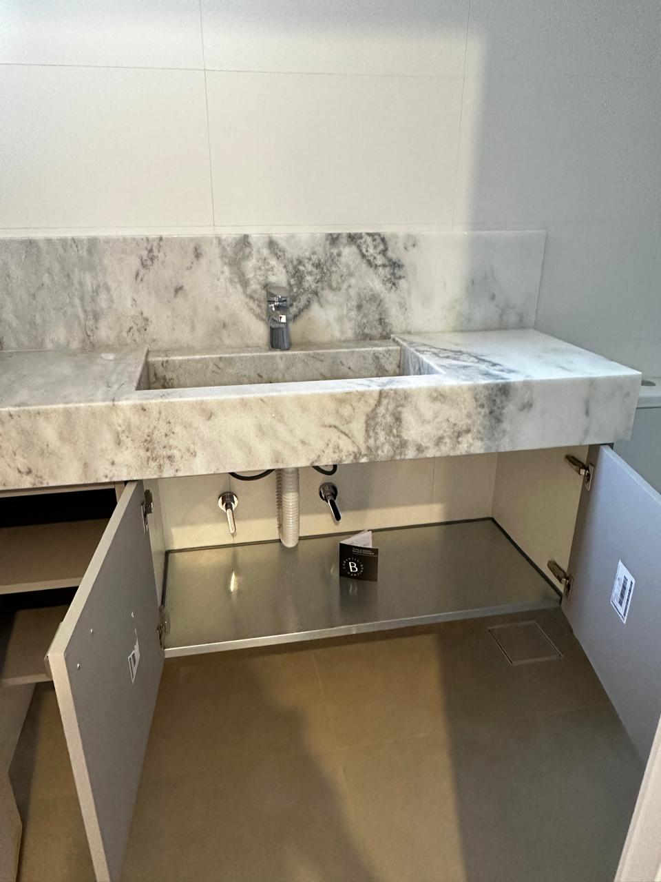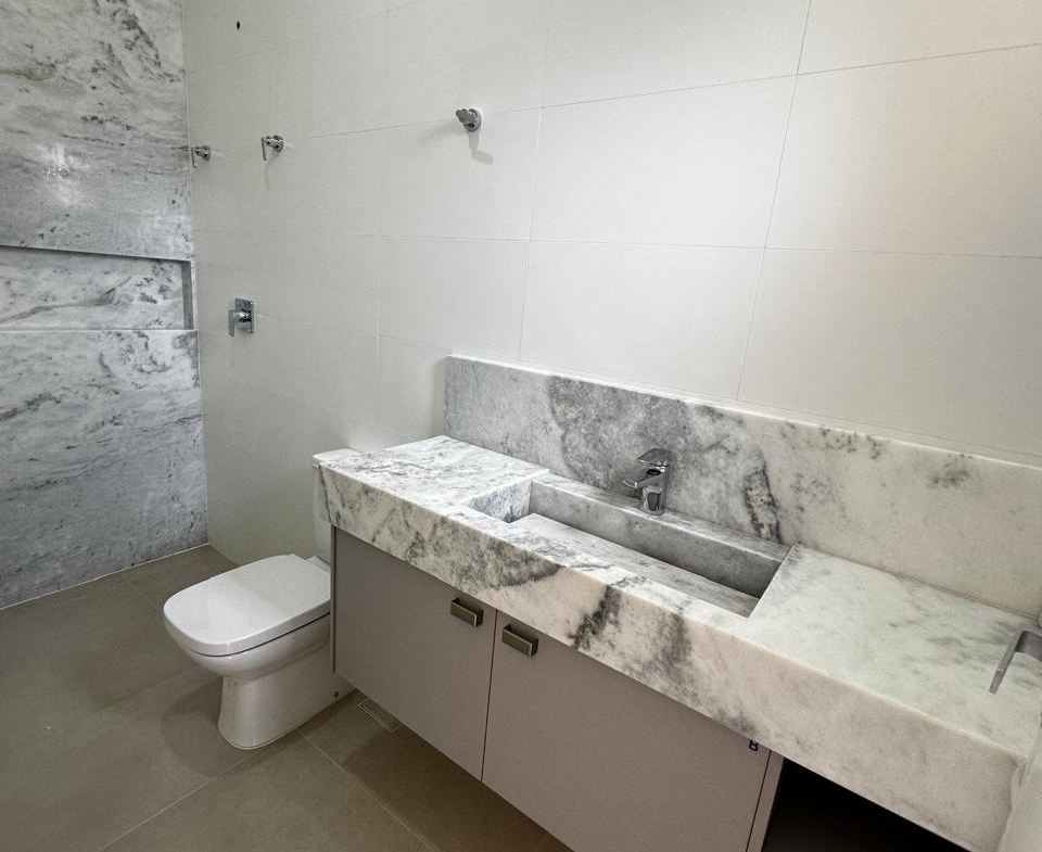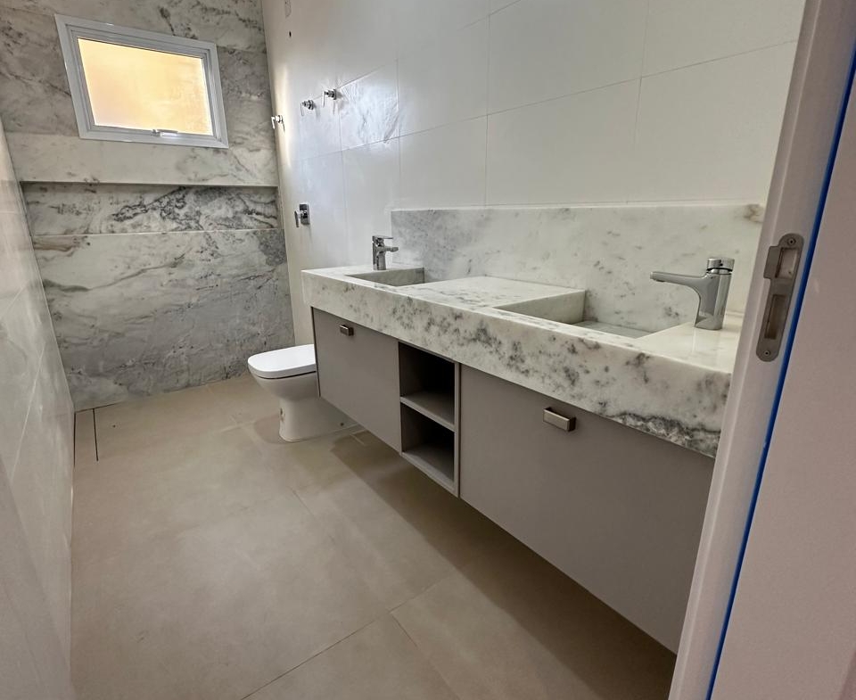 * Chuveiro das 3 suítes com acionamento por monocomando com água quente e fria;