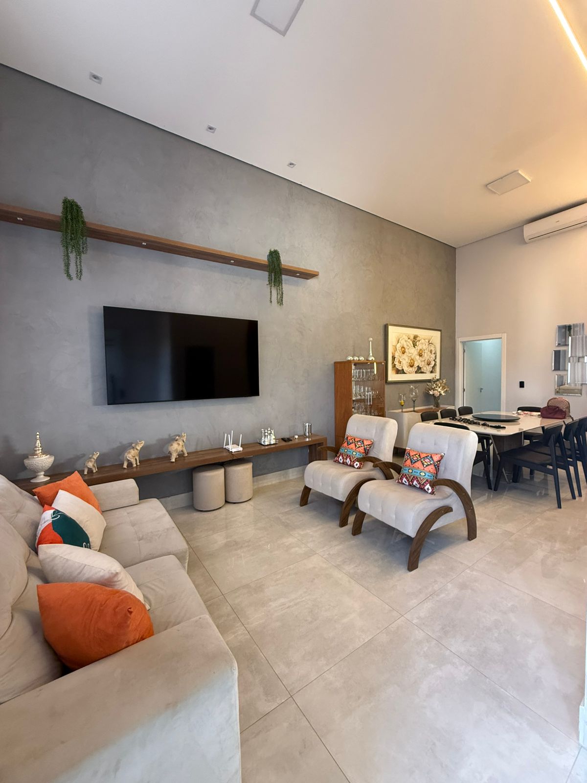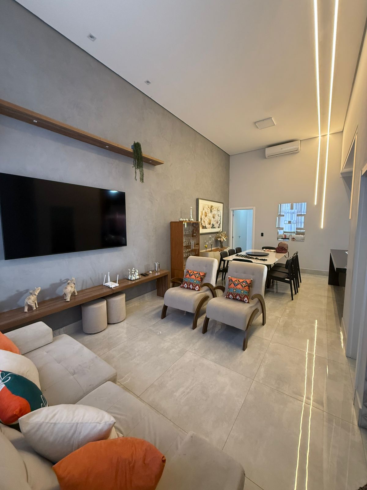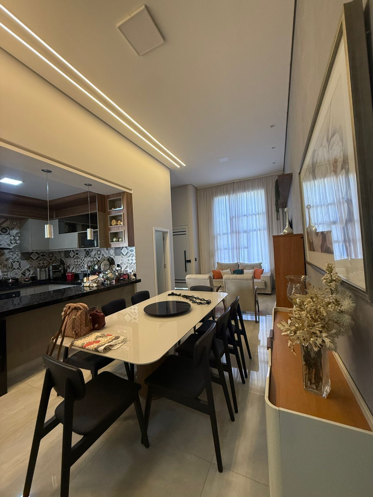 Living Integrado: Ampla sala de estar e sala de jantar com pé-direito generoso, proporcionando iluminação natural e ventilação ímpares.